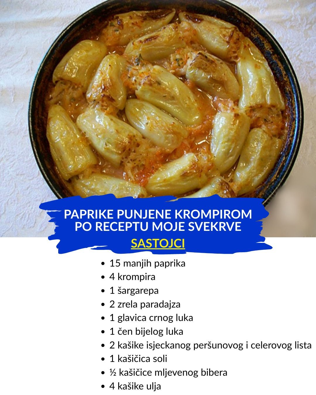 PITA JAJARA: Starinska pita od nekoliko sastojaka. Od par sastojaka koje uvijek imate u kući možete napraviti fenomenalan ručak. Sastojci: Jufka: – 350 gr brašna tip 500 (glatko) – 1 kašičica soli – 2 kašike ulja – 180 ml mlake vode Nadjev: – 8 jaja – 5 kašika kukuruznog griza – 3 kašiuke pšeničnog griza … Read more