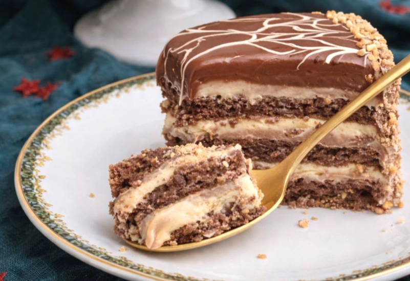 Biskvit je pun mlevenih lešnika i kakaa, mekan i aromatičan.