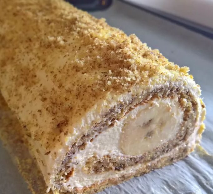 - Banane premažite limunovim sokom, stavite ih na koru i urolajte u rolat.