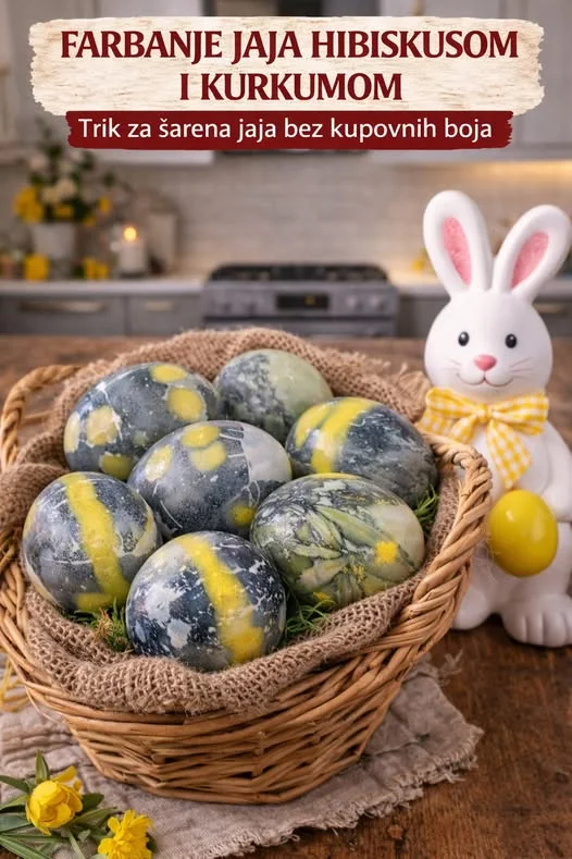 Prirodno farbanje jaja je sve popularnije jer daje prelepe, neobične šare bez hemijskih boja. Kombinacija hibiskusa i kurkume stvara zanimljive nijanse ljubičaste, plave i zlatno-žute, pa svako jaje izgleda kao malo umetničko delo.