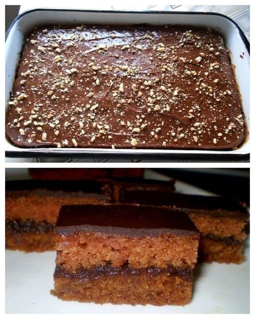 Nauljiti pleh i posuti ga brasnom. Sipati polovinu smese u pleh i staviti u rernu zagrejanu na 170C. Ostaviti testo da se malo zapece pa izvaditi pleh i premazati testo filom.