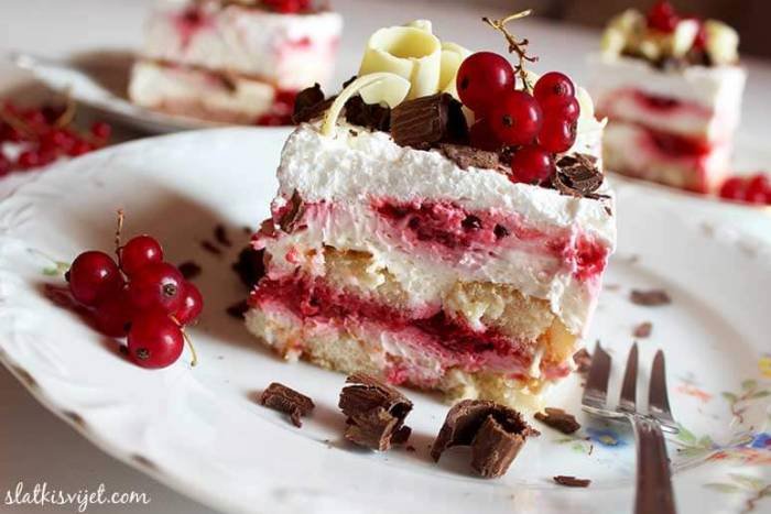 Kolač premažite ostatkom tučenog slatkog vrhnja i spremite u hladnjak na nekoliko sati da se dobro rashladi prije posluživanja.