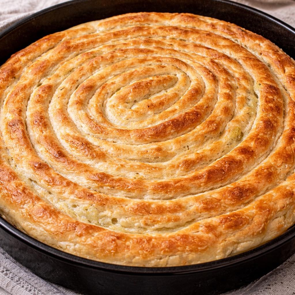 Presjeci jufku na 3 dijela i filovati 1/6 nadjeva. Uvijati jufku po zelji u zvrkove, ili krenuti od sredine i uvijati jednu oko druge dok ne popunite tepsiju. Ja sam koristila tepsiju velicine 36 i ova kolicina sastojaka mi je tacno popunila tepsiju.