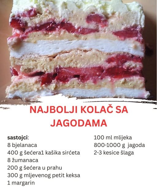 Ako tražite savršen kolač koji je istovremeno lagan, svjež i pravi izbor za svaku priliku – na pravom ste mjestu. Ova torta od jagoda ne samo da izgleda fantastično, već svojim ukusom oduševljava već pri prvom zalogaju. Bilo da je pripremate za slavlje, porodični ručak ili jednostavno kao poslasticu uz kafu, ovaj recept će postati vaš omiljeni izbor.