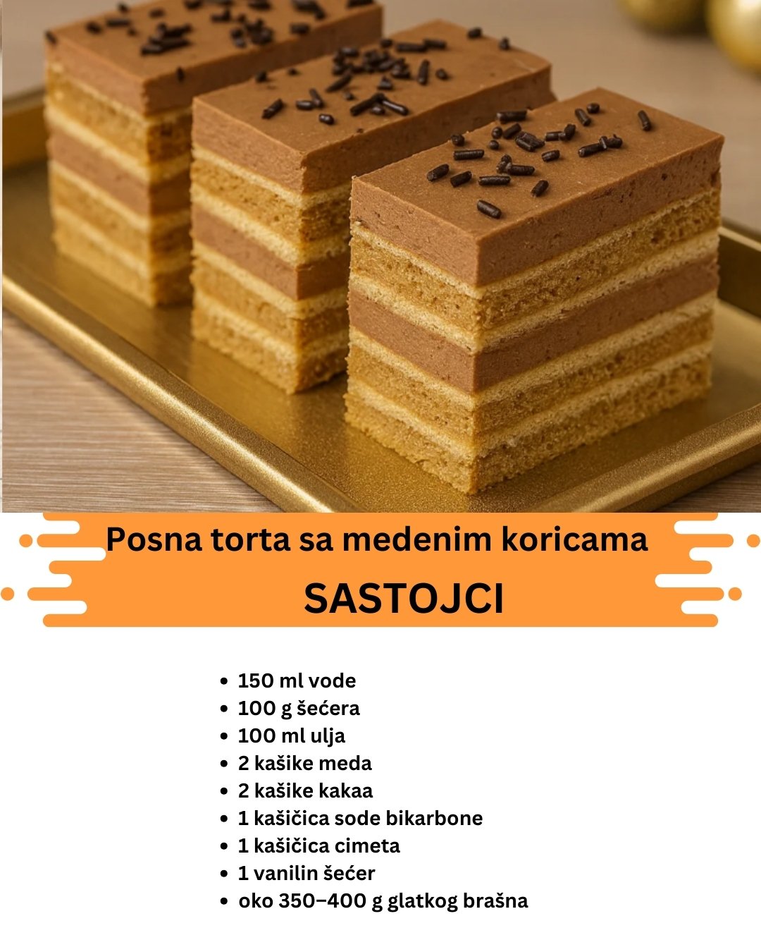 Posna torta sa medenim koricama – starinski kolač bez mleka i jaja