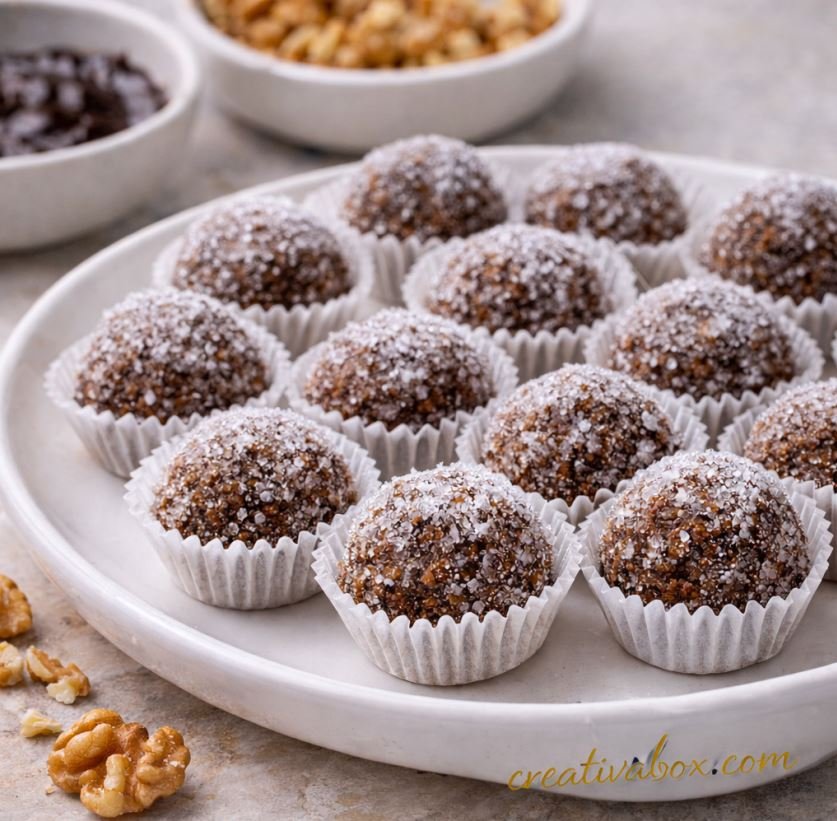 Kad ti se jede nešto slatko, a nemaš vremena za rernu i komplikacije, ove posne kuglice su pun pogodak. Kombinacija oraha, mlevenog keksa i gustog soka od kajsije daje savršeno mekanu i sočnu smesu, dok otopljena posna čokolada sve poveže u bogat, “čokoladni” ukus. Najlepše su kada odstoje, pa postanu još aromatičnije i lepše se seku i služe.