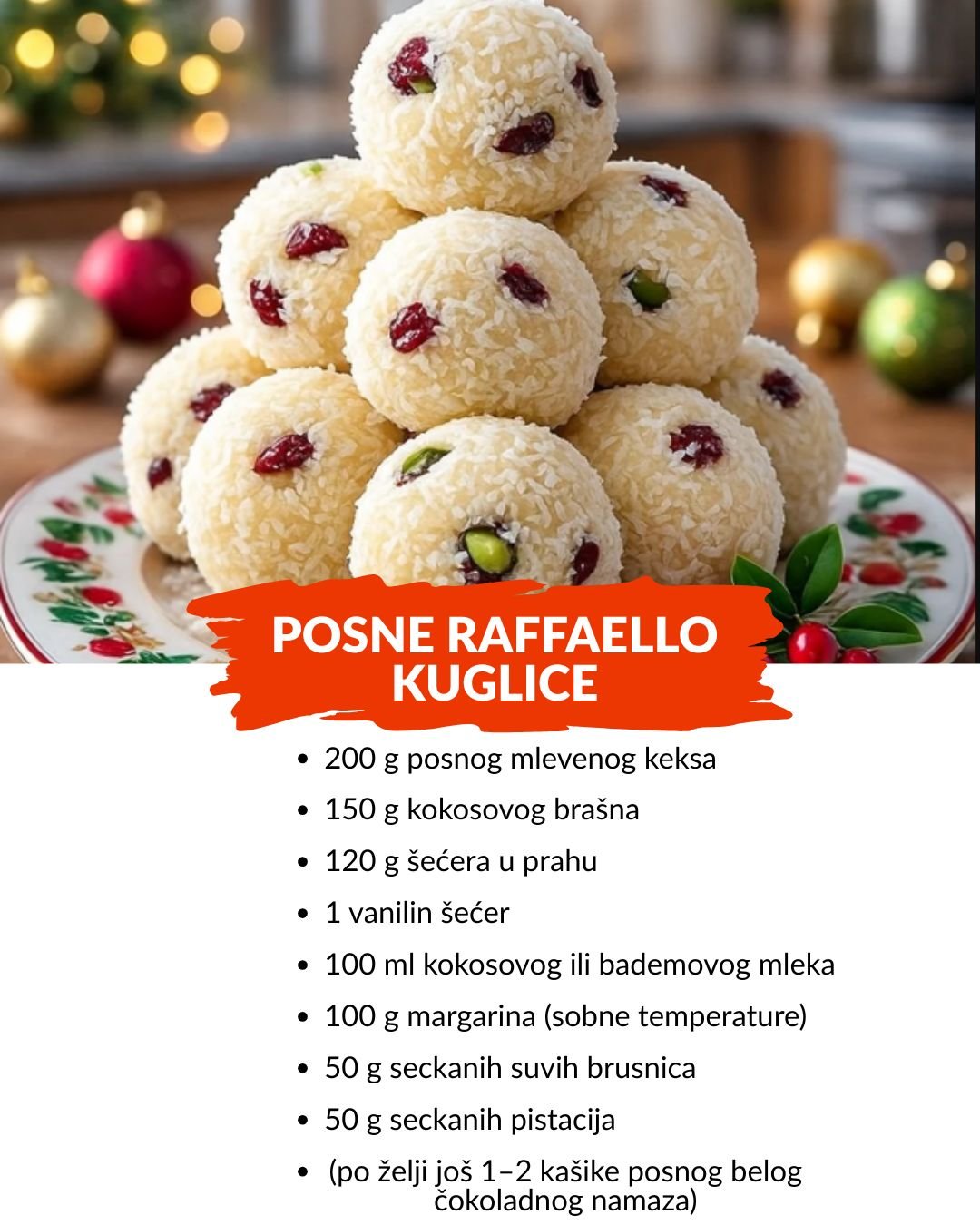 🥥 POSNE RAFFAELLO KUGLICE sa brusnicom i pistacijom