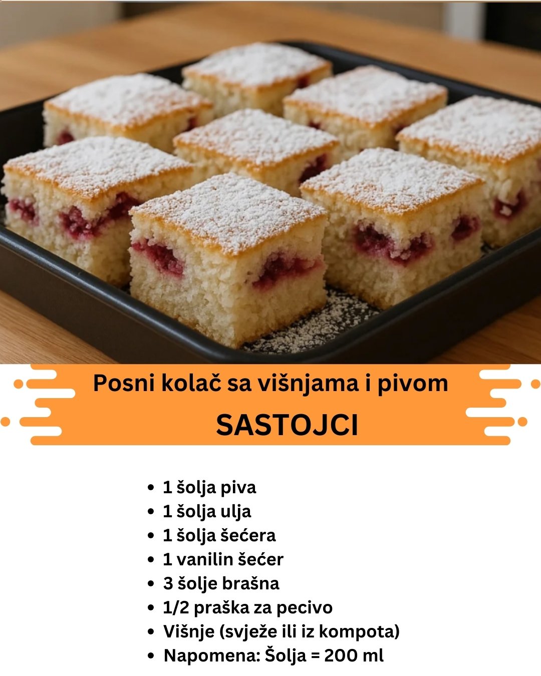 posni kolač sa višnjama, kolač sa pivom, posni recepti, kolač bez jaja, posna lenja pita, recept za posni kolač, jednostavan posni kolač, posni deserti, kolač sa višnjama bez jaja