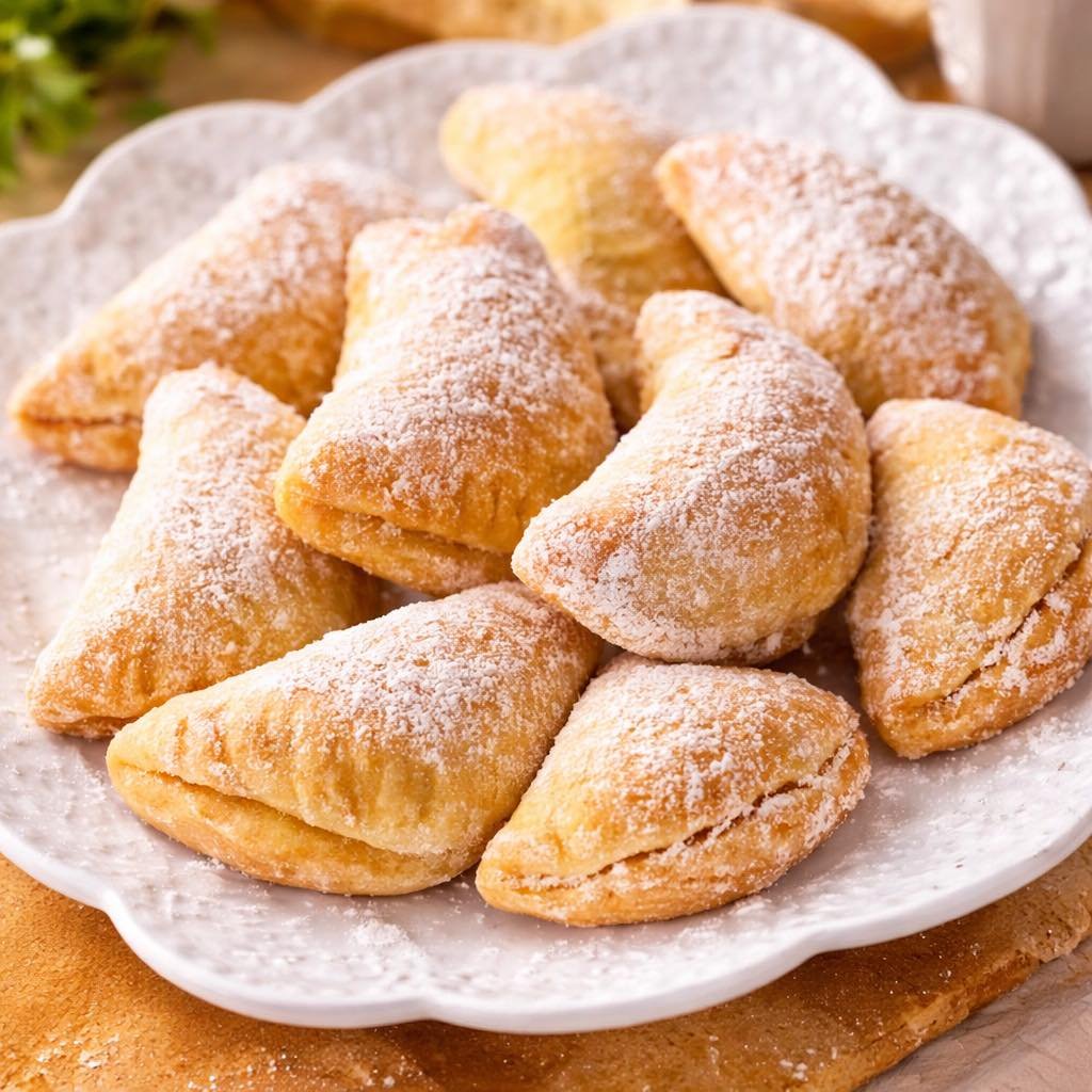 Izmešajte vodu, vanilin, šećer, prašak za pecivo, ulje, sirće. Dodajte brašno i zamesite meko testo. Ostavite da stoji 10 minuta pa premesite. Čašom prečnika 6 cm. ili 8 cm. vadite kolutove, na svaki stavite malo džema, preklopite i viljuškom pritisnite krajeve. Pecite u zagrejanoj rerni na 200 stepeni oko 30 – 35 minuta. Treba da blago porumene sa svih strana. Vruće uvaljajte u šećer. Prijatno!