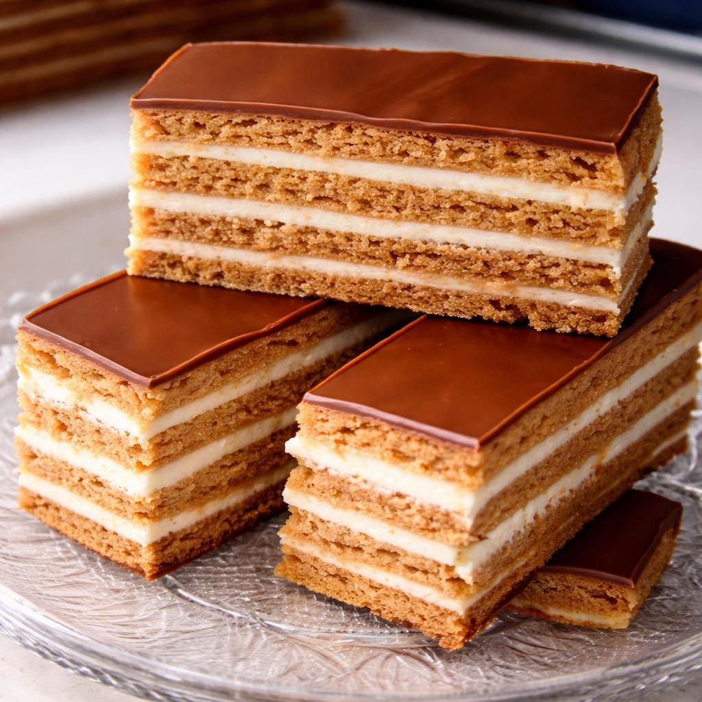 Tijesto:1 cijelo jaje,150 g šećera,1 žličica sode bikarbone,50 g margarina,2 žlice mlijeka,2 žlice meda,450 g glatkog brašna,1 žlica kakao.Krema:4 dl mlijeka,2 i 1/2 žlice glatkog brašna,2 žlice šećera,1 vanilin šećer,2 žlice mljevenog šećera (ne prepune),150 g margarina.Čokoladna glazura:100 g čokolade za kuhanje,3 žlice ulja.