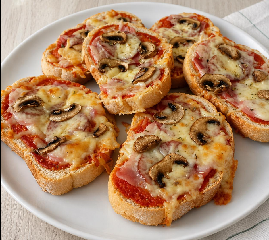 Priprema: Kriške hleba staviti u pleh obložen papirom za pečenje. Pomešati mleko i ulje, pa njima nakvasiti hleb (po 3 kašičice). Zatim premazati kriške kečapom, rasporediti šunku, čajnu ili bilo šta što volite ili imate u frižideru, narendati kačkavalj, poredjati tanko rezane šampinjone i peći 15 minuta na 200°C u već zagrejanoj rerni. Gotove sendviče posuti origanom.