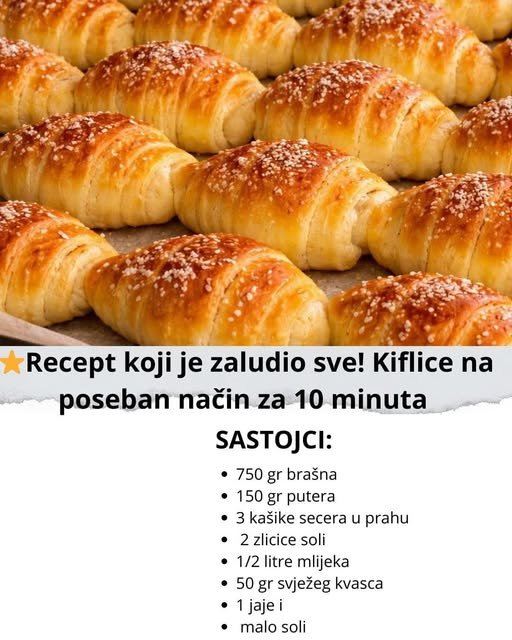 Ove kiflice su postale pravi hit jer nude ono što svima treba u svakodnevici – brzinu, sigurnost i savršen ukus. Prave se bez dugog čekanja, bez komplikovanih koraka i bez nerviranja oko testa, a rezultat su mekane, mirisne kiflice koje se jedu i tople i hladne. Poseban način pripreme daje im laganu strukturu, blagu hrskavost spolja i mekoću iznutra, pa su idealne za doručak, večeru, užinu ili iznenadne goste. Upravo ta kombinacija praktičnosti i ukusa učinila je da se recept masovno deli i pamti.