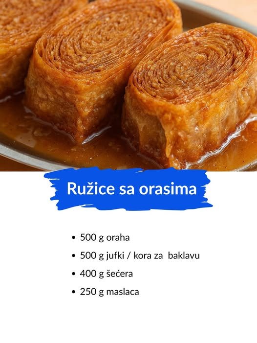 Ružice sa orasima, ukus je fenomenalan – zaljeveni kolač: Što duže stoje sve su bolje i bolje…