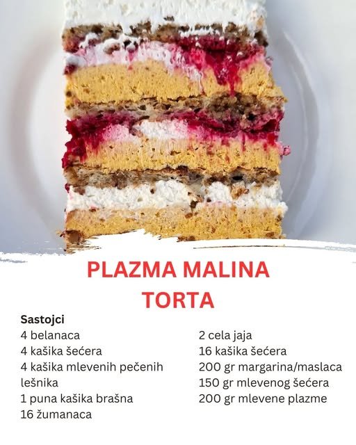 Malina Plazma torta nije običan desert. Ona je rezultat preciznosti, kreativnosti i domaće ljubavi prema kolačima. Njena lepota nije samo u izgledu, već u onome što se dešava kada se sastojci – korice, filovi, maline – spoje na jeziku. Slatko, kremasto, voćno, hrskavo – sve u jednom zalogaju.