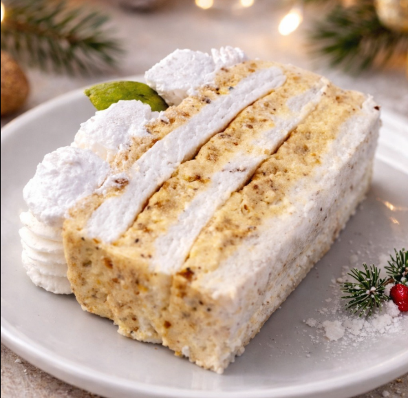 Tepsiju od rerne obložite papirom za pečenje i rasporedite smesu pa je pecite na 150 C sat vremena bez otvaranja rerne.Nakon toga ostavite da se potpuno ohladi i isecite je na tri jednaka dela.Kora je nežna lepljiva iznutra zato budite pažljivi.